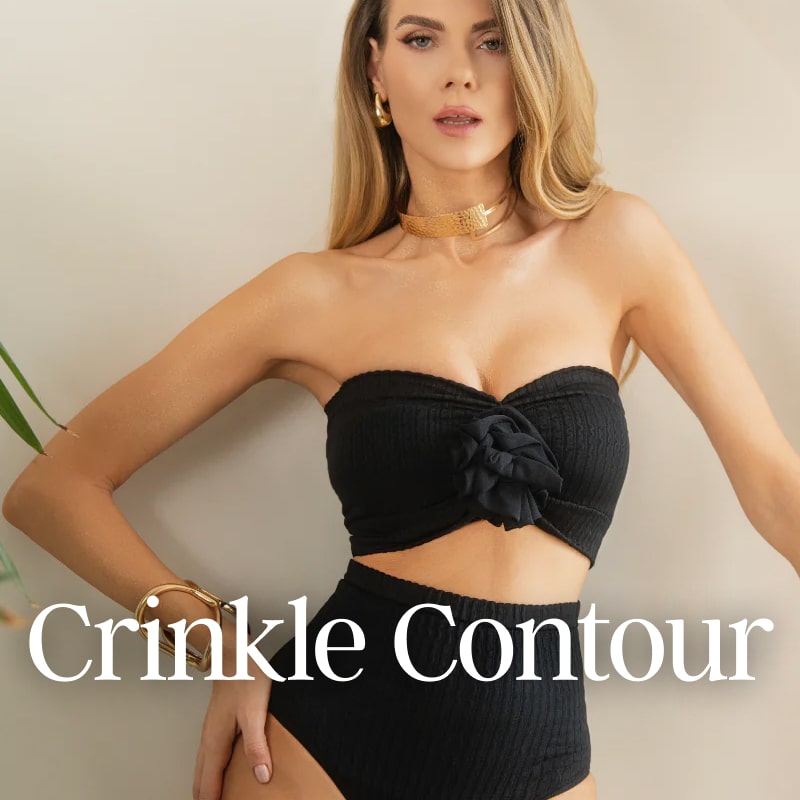 Set 2 piese costum de baie fara bretele "Tip Bandeau" "Crinkle Sculpt" - Negru