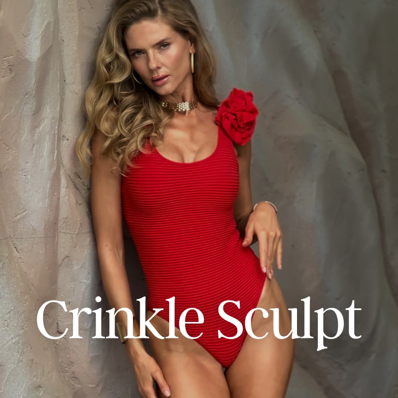 Costum de Baie "Crinkle Contour" tip "Body Întreg cu Bretele Subțiri Reglabile si Cupe Push Up" - Rosu
