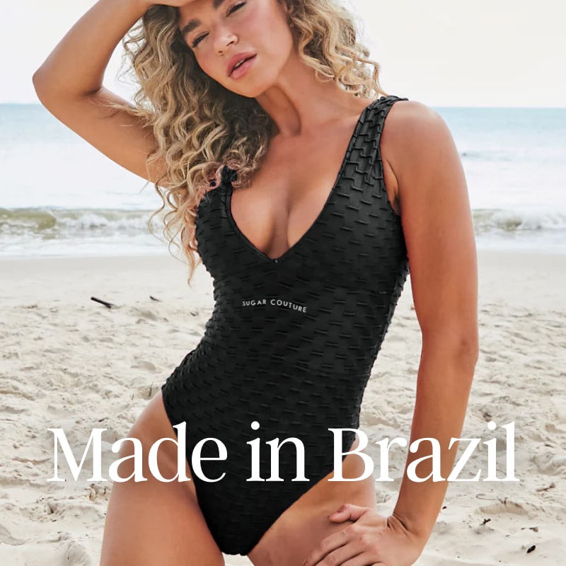 Costum de baie întreg “The Signature Brazilian Body” cu decolteu în V - Negru